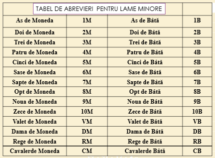 -- cu cele patruzeci de numere (se scot lamele minore: valet, regine, regi si cavaleri).